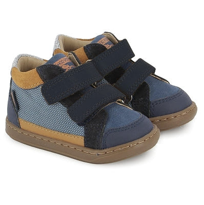 Item: These trendy high-top sneakers combine navy leather, denim, and suede accents for a stylish and comfortable design. Featuring two adjustable Velcro straps, they provide an easy and secure fit, perfect for active toddlers. The durable rubber sole offers excellent traction, making them a great choice for everyday wear and outdoor adventures.