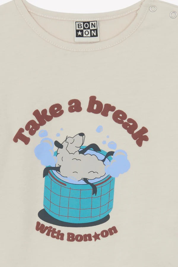 Item: The Taxi Break t-shirt from the "Faroe Island" collection is an invitation to adventure and relaxation! With its long sleeves and its Illustration "Take a break", it is ready for fall escapades. Easy to put on with its Button Pressures on the shoulder, it is perfect for small explorers.