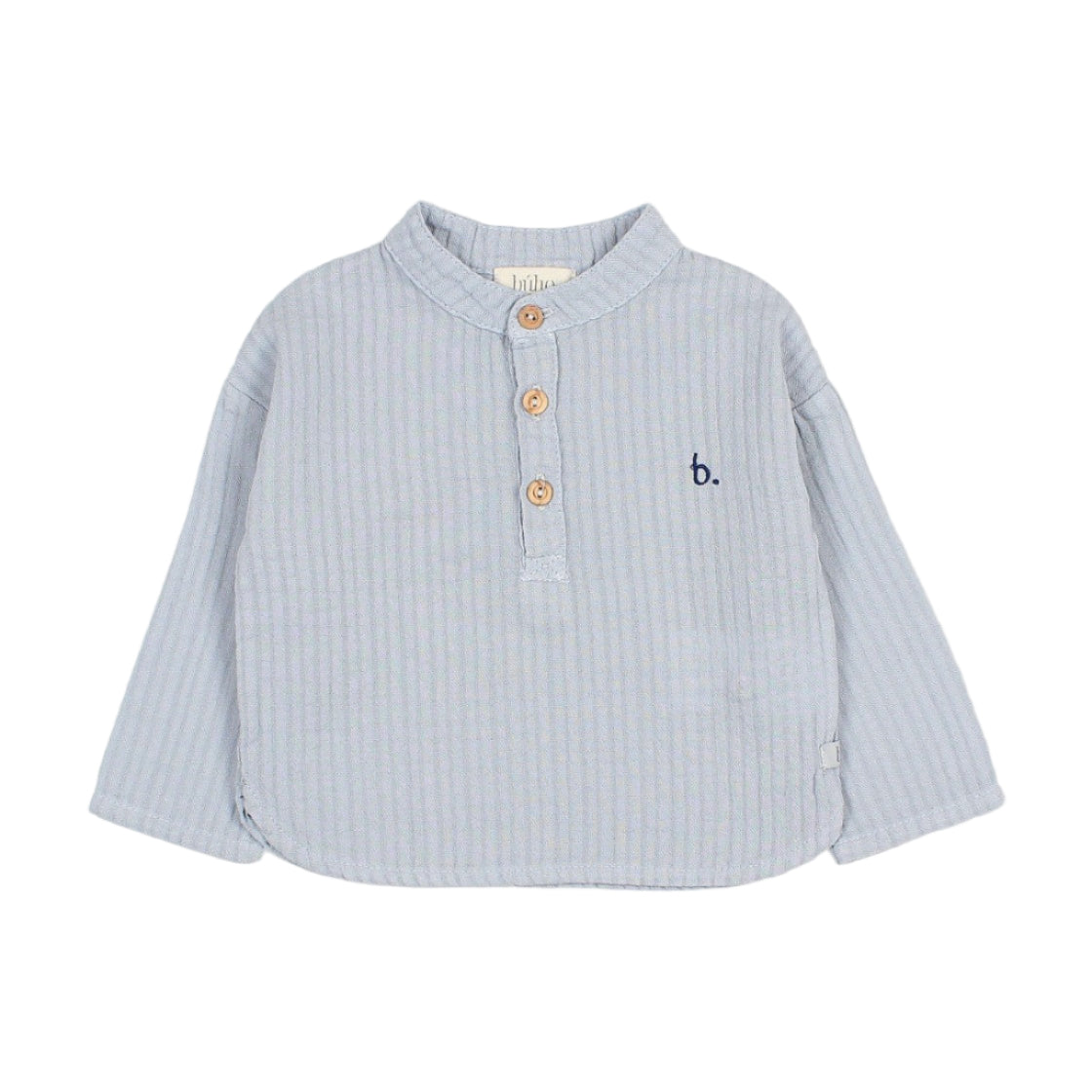 Item : Shirt with embroidery detail in chest. Mao collar and long sleeves. Wood button fastening on chest.