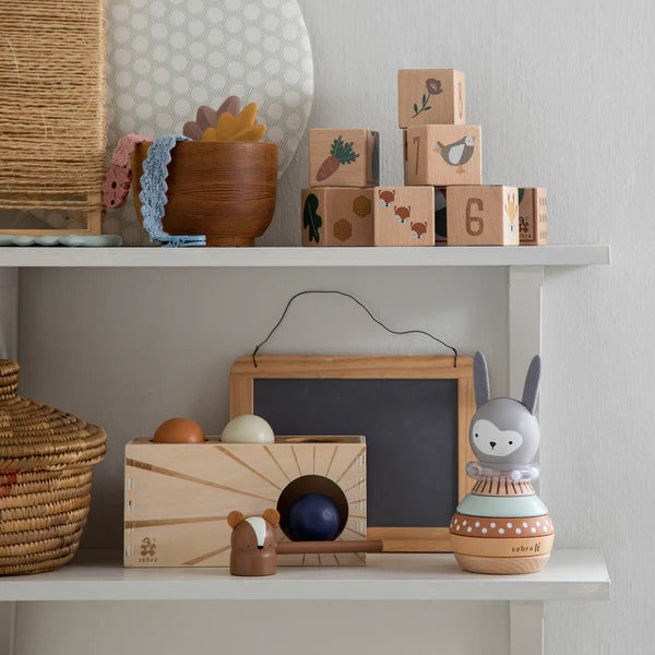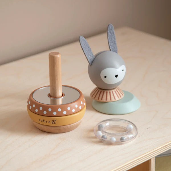 Item: The stacking hare Siggy is a fun stacking toy, primarily made of wood and with both a mirror and a rattle from Sebra’s Woodland collection. Siggy is amazing when it comes to supporting fine and gross motor skills. It puts motor skills to the test as the rings are placed in order.