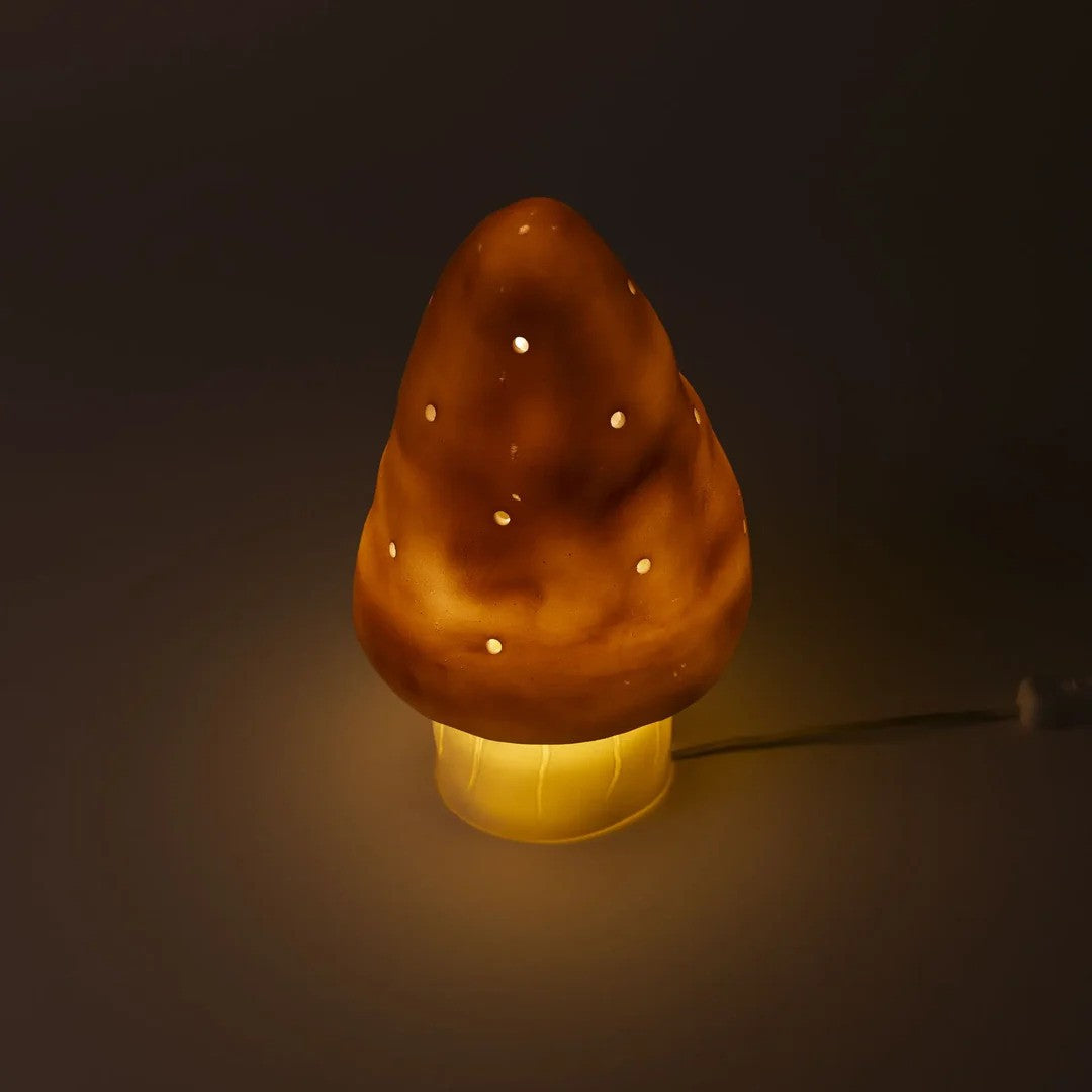 With the night light Small Mushroom Lila, a whole dream world opens up! The night light gives a very soft and veiled light and will help the little ones to fall asleep without fuss. Lighted or not, the mushroom is always a nice decorative object. Traditionally made. For the safety of the kids, supplied with LED system of 1.5 W.