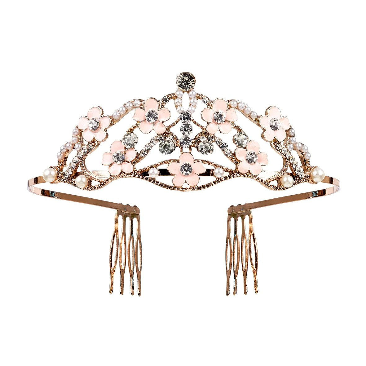 Item: Crown Susanne is made of gold metallic metal. The princess crown is decorated with colorful plastic sequence stones. It holds very well in the hair because of the combs at back side.