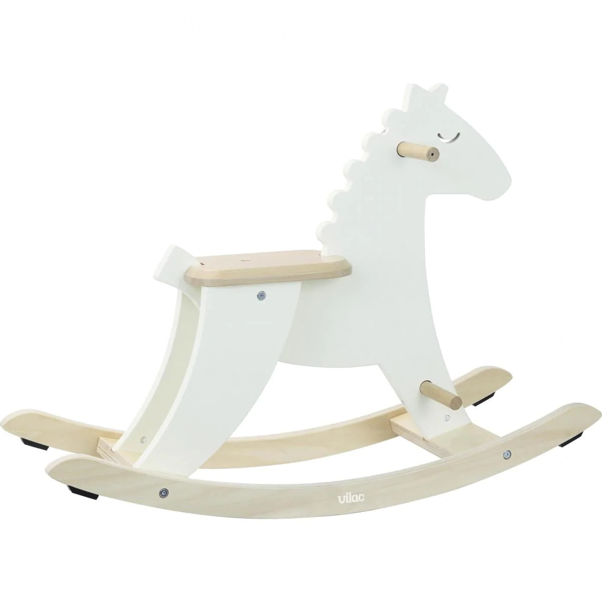 This classic wooden baby rocking horse ride-on toy from iconic french toy maker Vilac comes with a removable support hoop that keeps children stable when first learning to ride and is then easy to detach when they grow and become more confident.