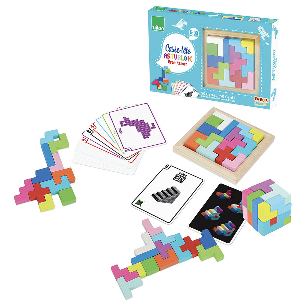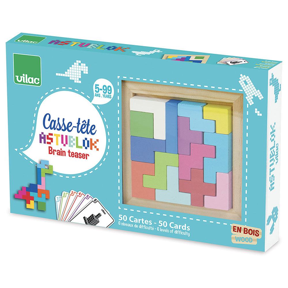 This wooden brain teaser game comes with colorful blocks and 50 challenge cards with 6 different difficulty levels to challenge your creative thinking and problem solving skills. Arrange the wooden blocks to mimic the images on the cards.