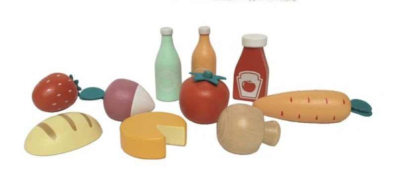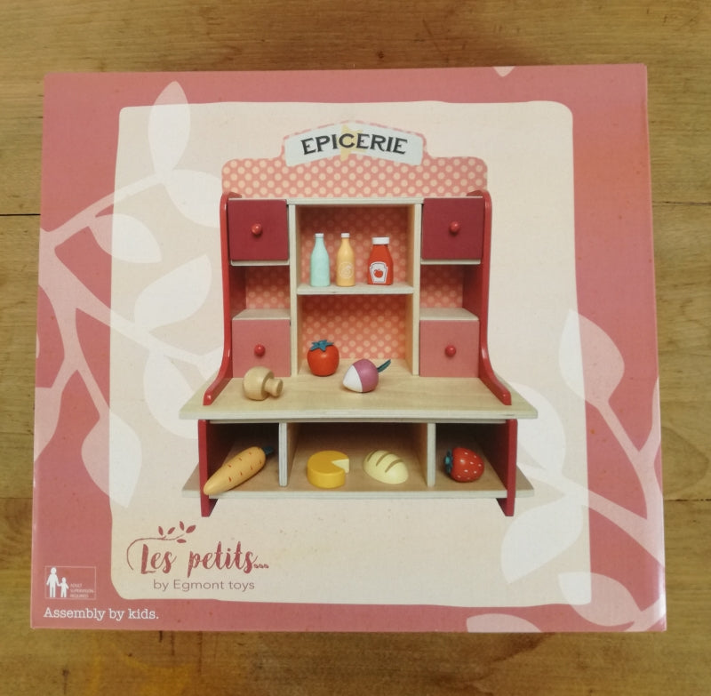 Emma is making her choice in front of the small grocery store. She is taking her time and looks in all the drawers. Orange juice, bread, cheese, fruit and vegetables everything is included. Easy to assemble without nails or screws.