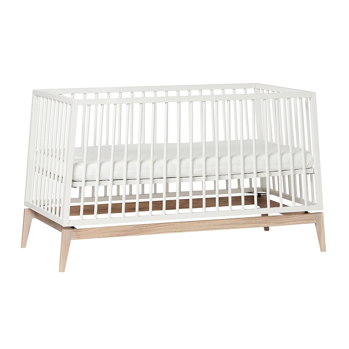 Simple and light – these are the thoughts behind the Leander Luna™ baby cot, its design and expression. The stringent lines and the elegantly balanced construction add a Nordic lightness to the design. The bed is made of solid oak and beech.