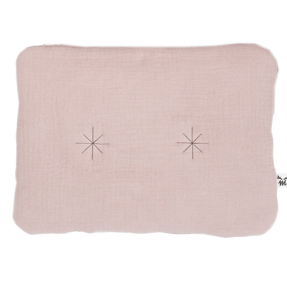 Item: This muslin pillow features a three-layer design, offering a soft and breathable surface ideal for warm days. It includes a decorative star-shaped stitching in a caramel hue, adding a charming touch. The pillow's muslin structure becomes more crinkled after washing, eliminating the need for ironing. It is Oeko-Tex certified, ensuring it is free from harmful chemicals.