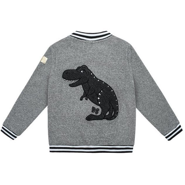 Item: A stylish bomber-style jacket featuring a standout T-rex print, designed with a relaxed silhouette and ribbed trims for a cool, casual look. Perfect for layering over tees or hoodies to add a playful yet fashionable edge to any everyday outfit.