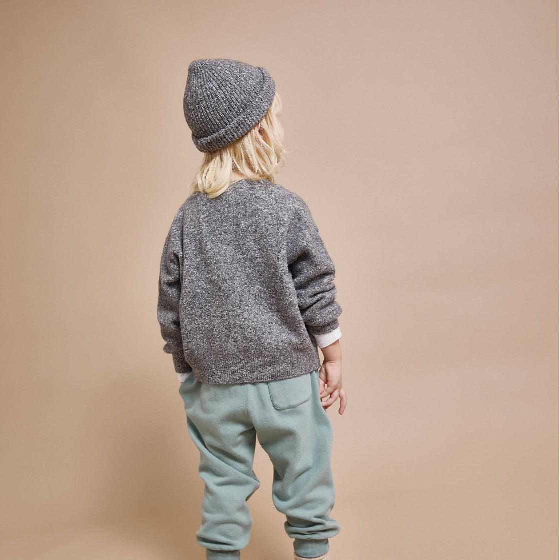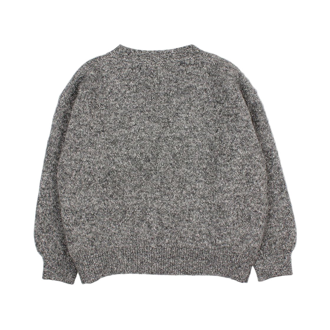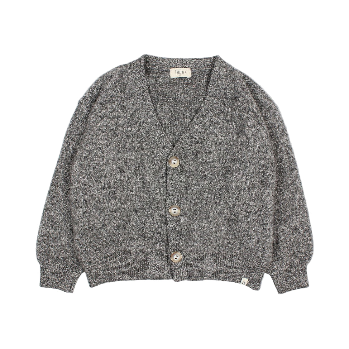 Item : Melange knitted cardigan. Button fastening on the front. V-neck. Ribbed cuffs and hem. Tab label detail on hem.
