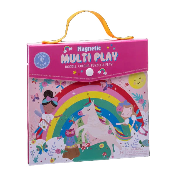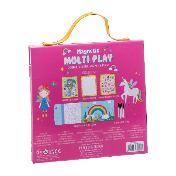 Doodle, colour, puzzle & play! The Rainbow Fairy Magnetic Multi Play is the ultimate multidimensional game. With 4 different activities to keep little ones entertained for hours. Open up the popper to reveal a 20 piece magnetic puzzle, 4 colour dry wipe pens with erasers, pop out and play magnetic pieces, a doodle and a colour in section. No danger of losing any pieces with them all being magnetic making it perfect for travel and taking out and about. Have so much fun with Unicorns, Fairies, Roller Blading Llamas and so much more. Reusable over and over again.