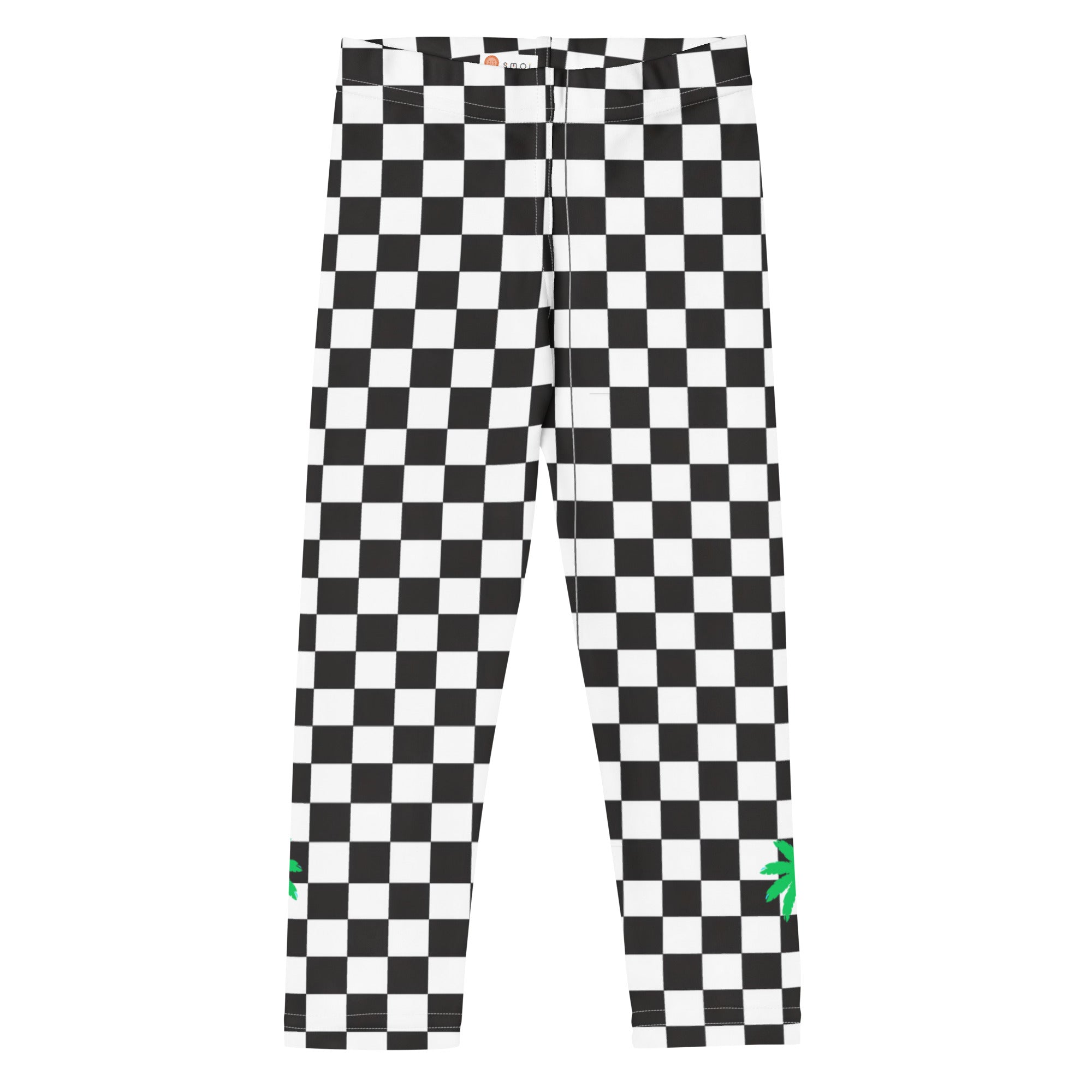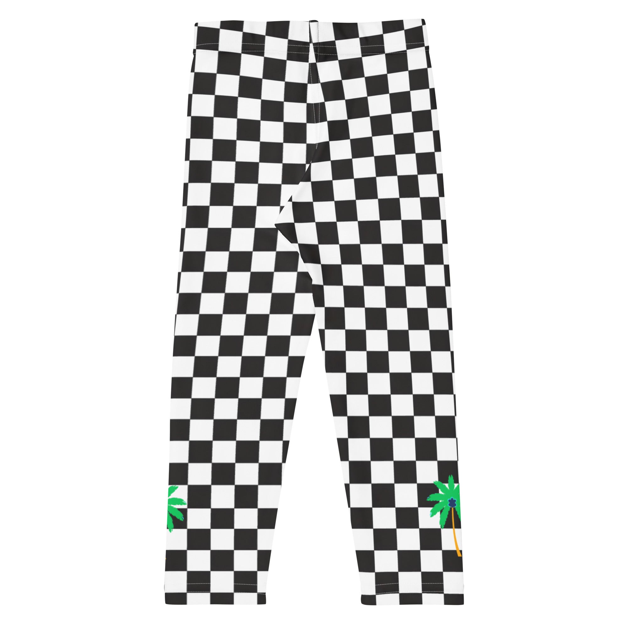 These kids’ leggings feature a bold black-and-white checkered pattern with playful palm tree accents near the ankles, blending streetwear cool with tropical vibes. Made from soft, stretchy fabric for maximum comfort and movement — perfect for active days with a touch of fun style.