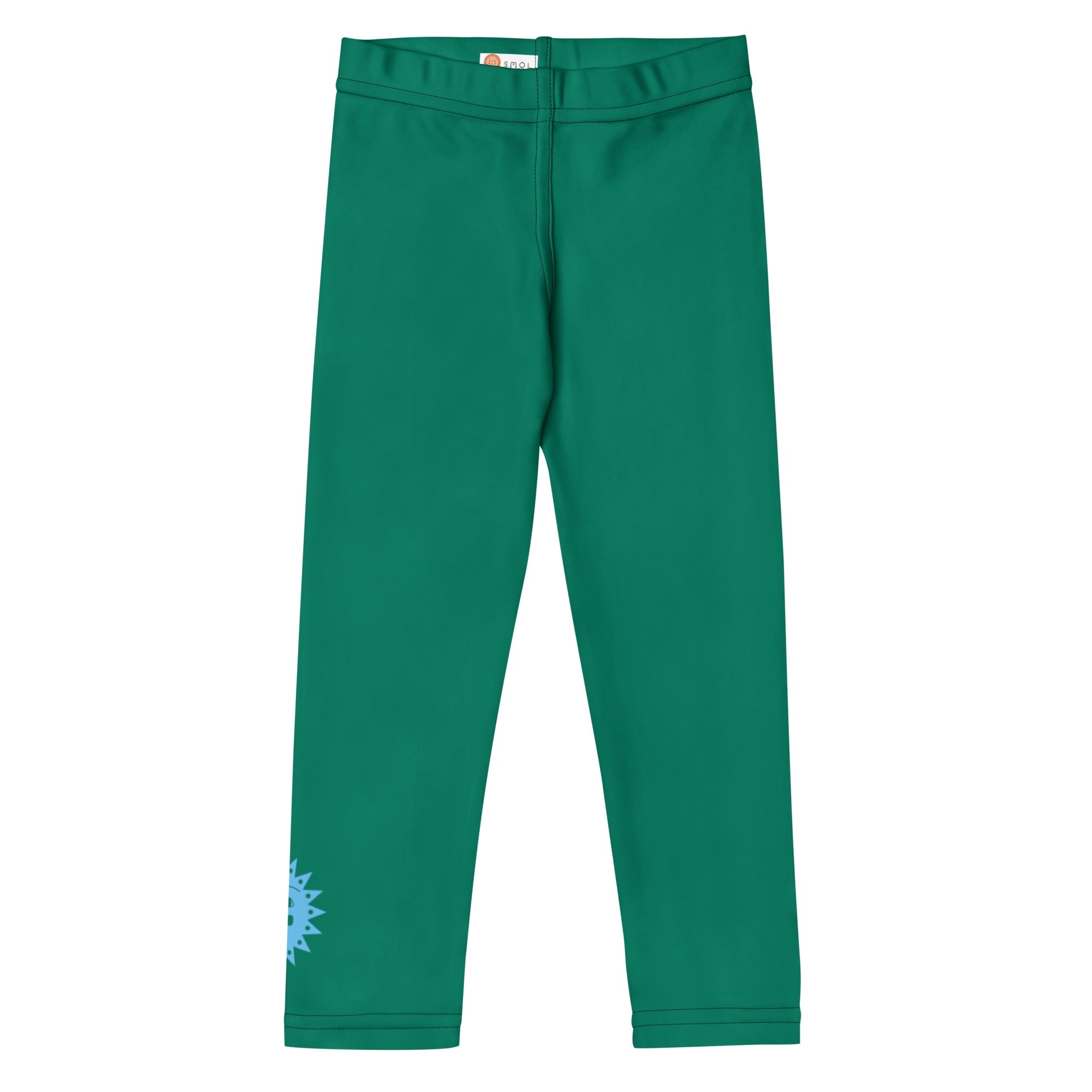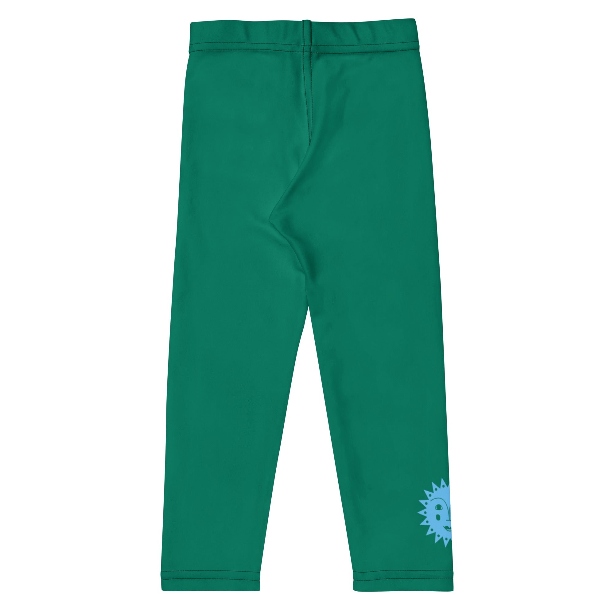 Item: These kids’ leggings come in a rich green color with a cheerful light blue sun graphic near the ankle. Designed with a smooth, stretchy fabric, they provide a snug yet flexible fit ideal for play or everyday wear. The fun print adds a playful touch to a clean, modern look.