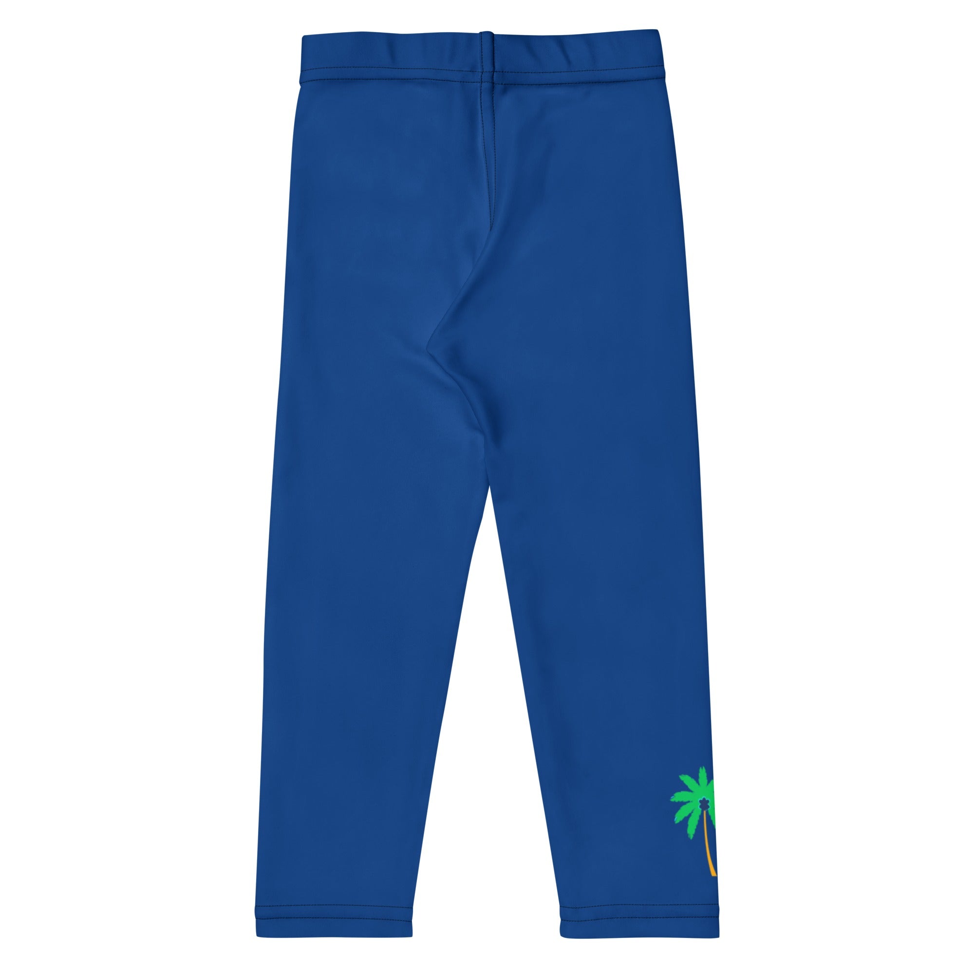 Item: These kids’ leggings feature a sleek, vibrant blue color with a small, playful green palm tree graphic near the ankle. Made from a stretchy, smooth fabric, they offer both comfort and flexibility—perfect for active days or casual wear. The design is minimal yet fun, adding a subtle tropical touch to a classic style.