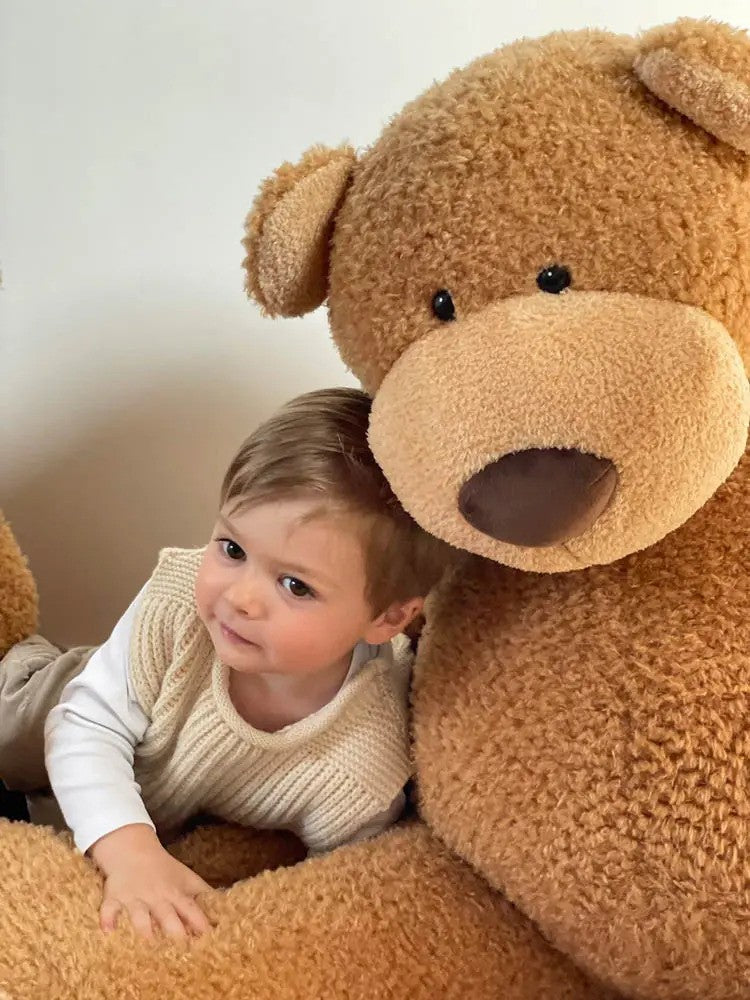 When bedtime feels scary, this cuddly brown bear sits quietly beside you. His soft sherpa fur and gentle beige paws make everything feel safer and warmer.