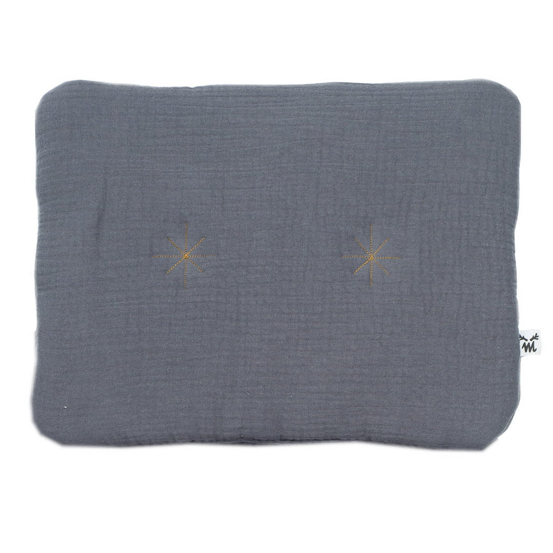 Item: This muslin pillow offers a soft and breathable surface, making it an excellent choice for your child's comfort. Designed with a subtle frame and a decorative touch, it adds a charming accent to any nursery or bedroom. The pillow features a removable filling, allowing for easy cleaning, and is equipped with a zipper closure for convenience. Its hypoallergenic filling ensures a safe and cozy environment for your little one.