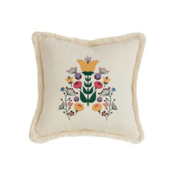 Item: Sun-drenched meadow vibes in a cozy square: this boho cushion blends colorful embroidery with playful fringe to add warmth, texture, and a touch of wanderlust to any space. Soft and snug for naps and story time, it turns kids’ rooms, reading nooks, and sofas into feel-good retreats—easy to mix, match, and let the room bloom.