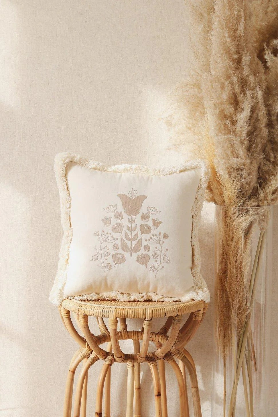 Item: Sun-drenched meadow vibes in a cozy square. This boho-styled cushion pairs delicate embroidery with playful fringe to bring warmth, texture, and a hint of wanderlust to any space. Perfect for kids’ rooms and reading nooks, it turns corners into storybook retreats—soft enough for naps, charming enough to style on beds, sofas, or rattan chairs. Mix it with your favorite pillows and let the room bloom.