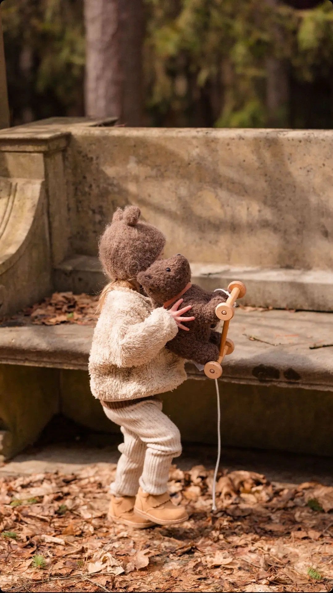 Watch little hands discover the joy of wheels turning and soft plush bouncing along. This cuddly companion transforms any hallway into an adventure, rolling smoothly on natural wooden wheels with that satisfying rumble across the floor.