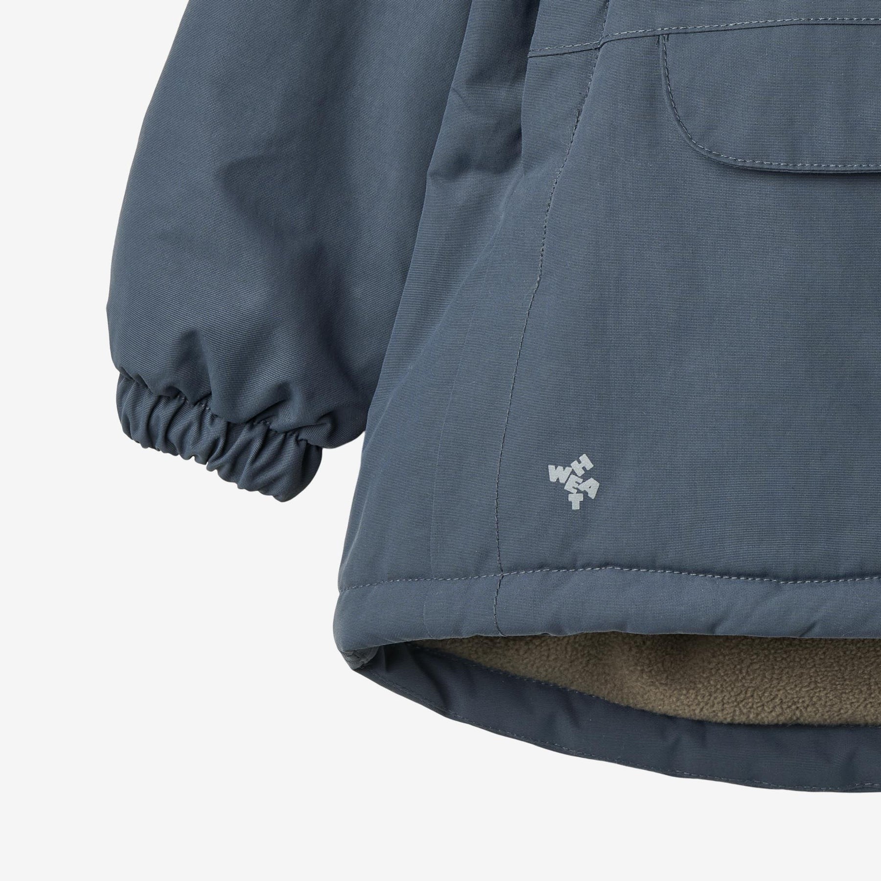 Item: Jacket Sascha is ideal for cooler autumn days. It features a soft recycled fleece lining for added warmth and comfort. The jacket is designed with a chest pocket secured with Velcro, perfect for stashing small treasures. The hood is attached with a metal press button, and the jacket is finished with reflective details for enhanced visibility.