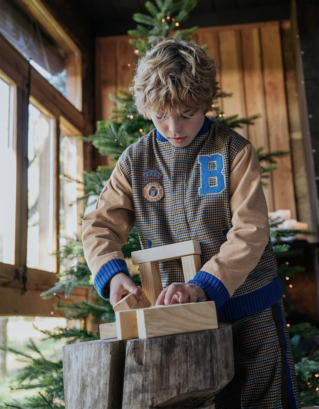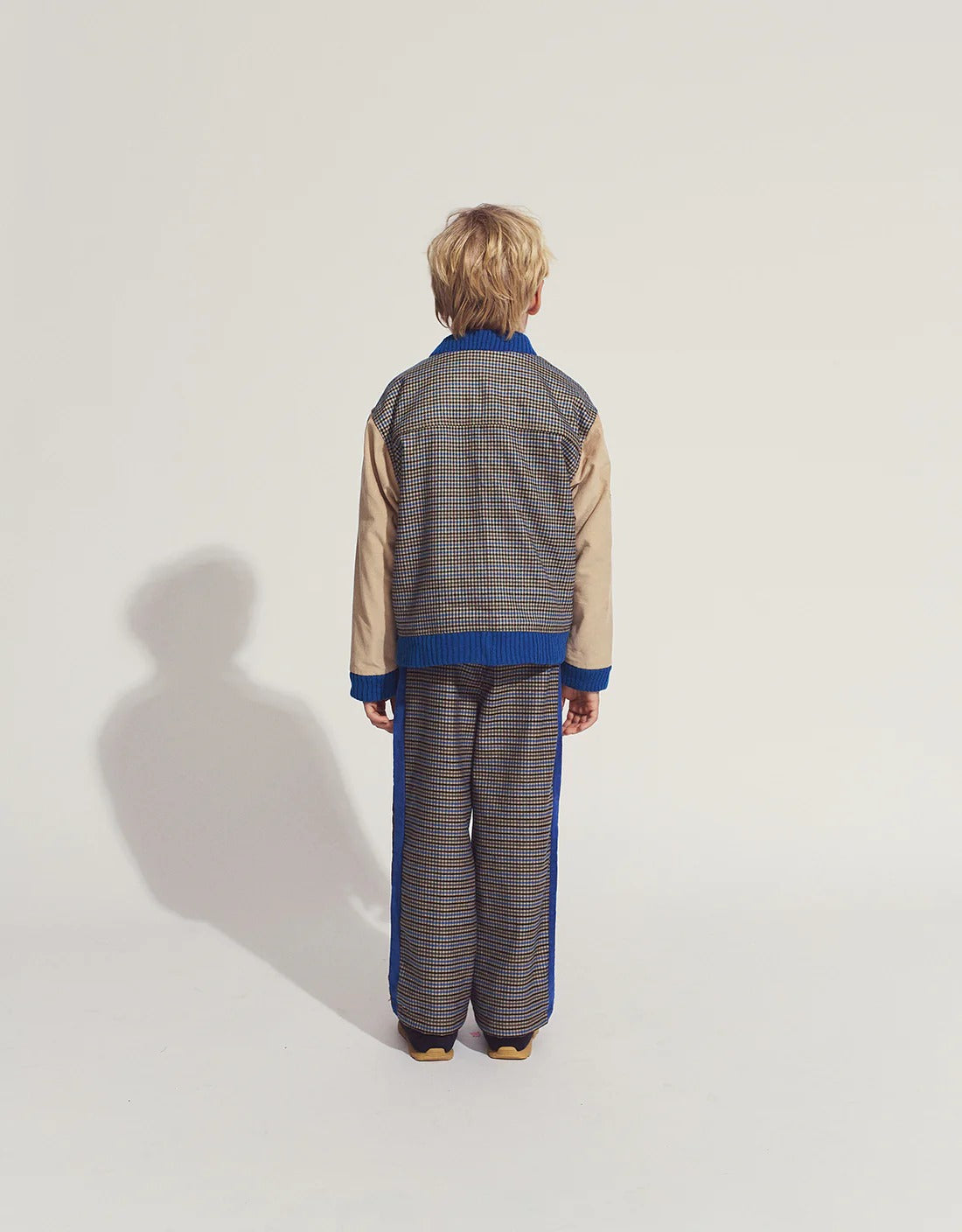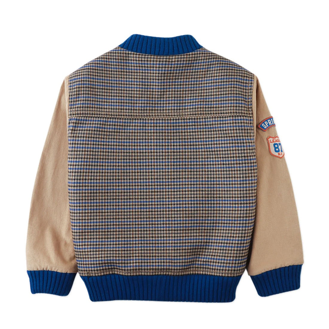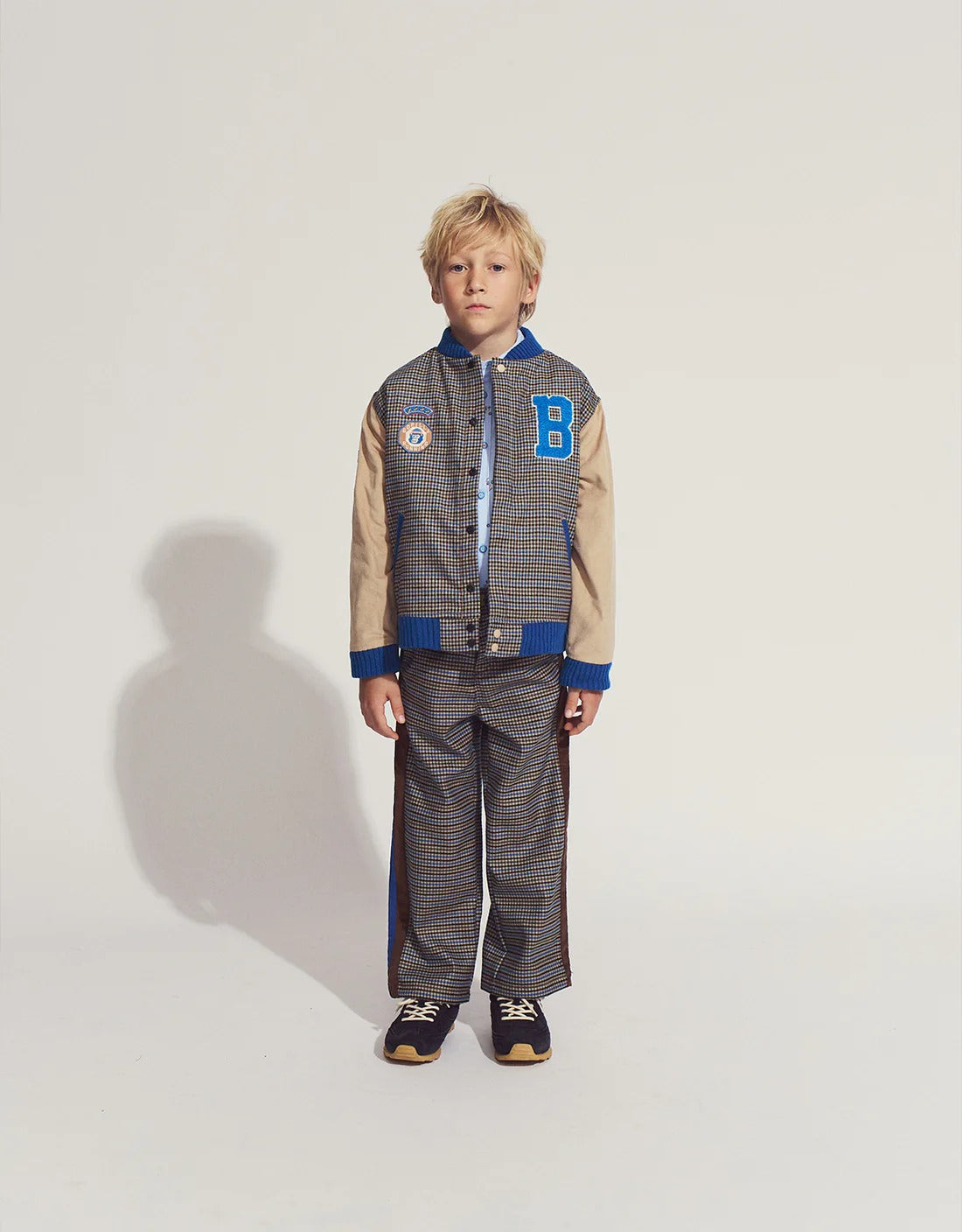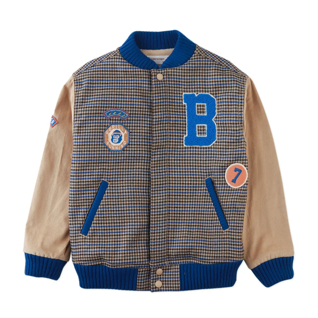 Item: Level up your little man's style with our Rey Jacket, crafted from our Snyder houndstooth pattern to combine classic varsity vibes with a fresh twist.
