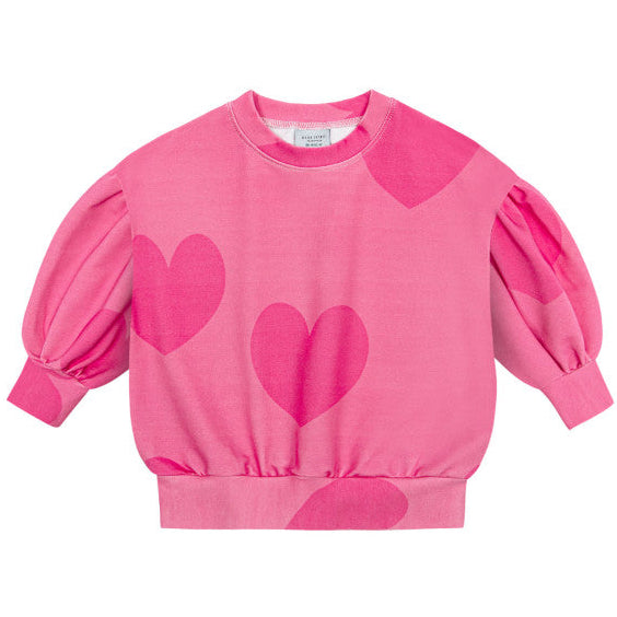 Item: Loose sweatshirt with pleated, puffy sleeves. This all-over-printed piece can make two adorable outfits – one can be with bottom covered with the same print, this creates a totally unique look. Another one can match the sweatshirt with plain bottom – such an outfit would even distinguish the sweatshirt more.