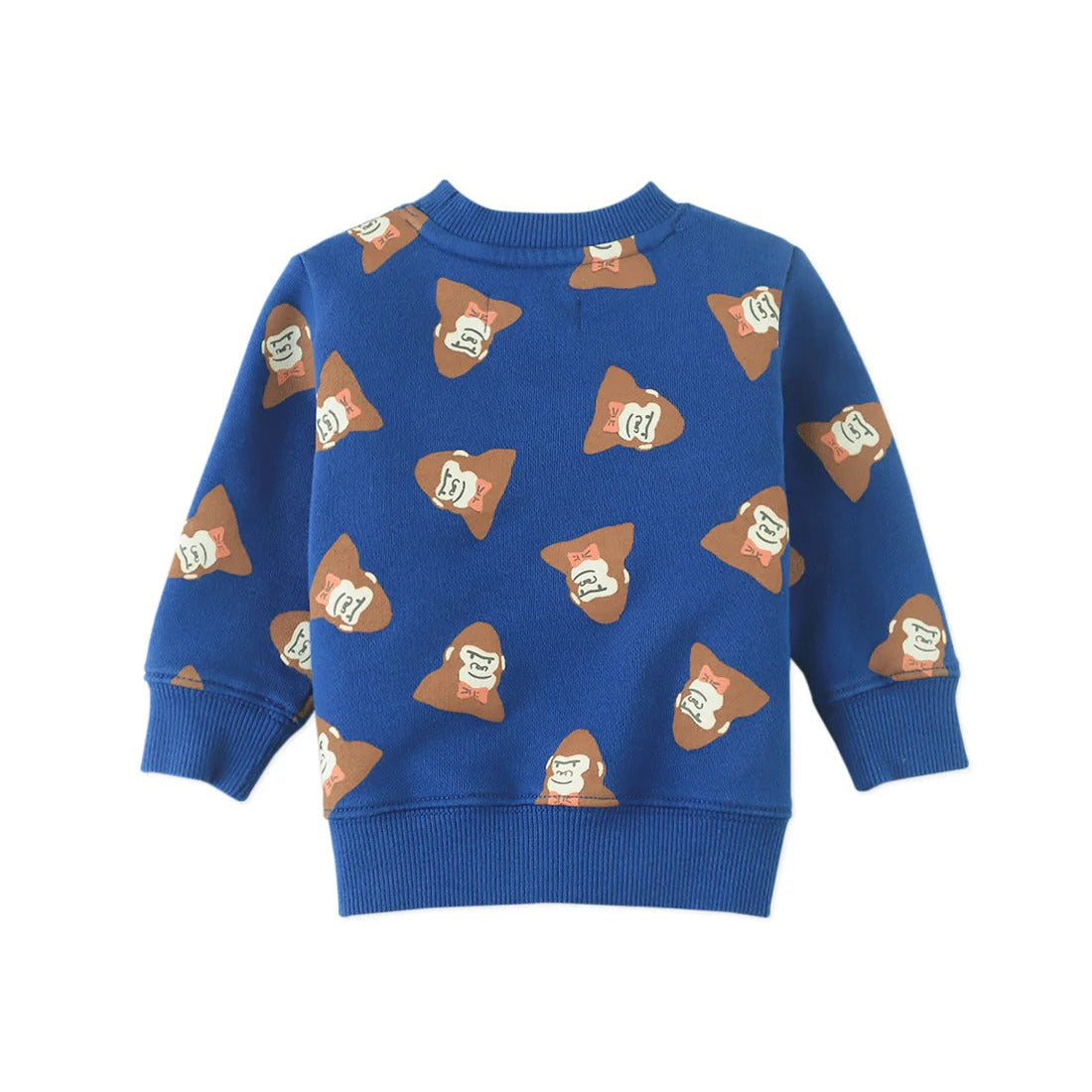 Item: Get ready to roar with the Baby Cary Sweatshirt in deep blue, featuring our Kong print and a bold embroidered patch.
