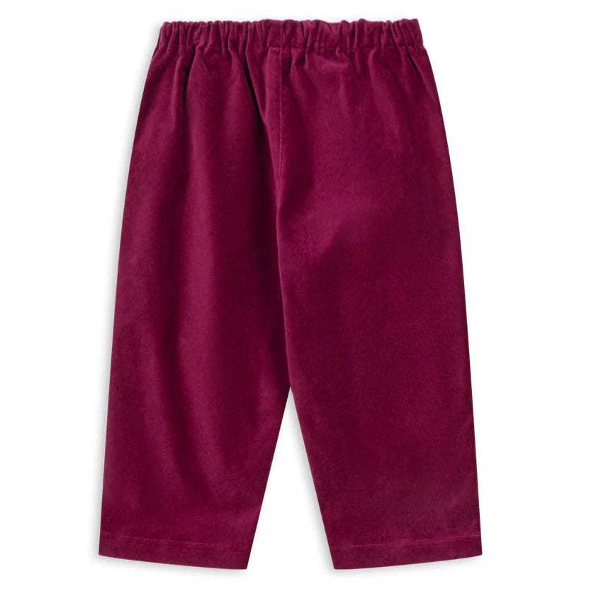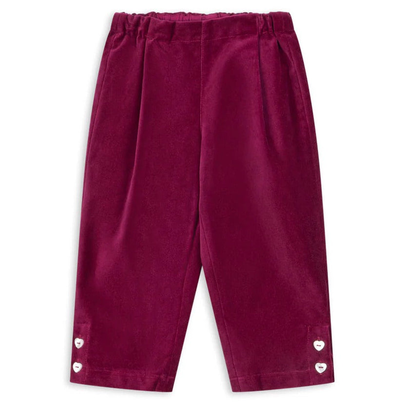 Item: Soft velvet pants in a heavy fabric that fit beautifully. Designed with a partially elastic waistband and decorative buttons at the ankle cuffs.