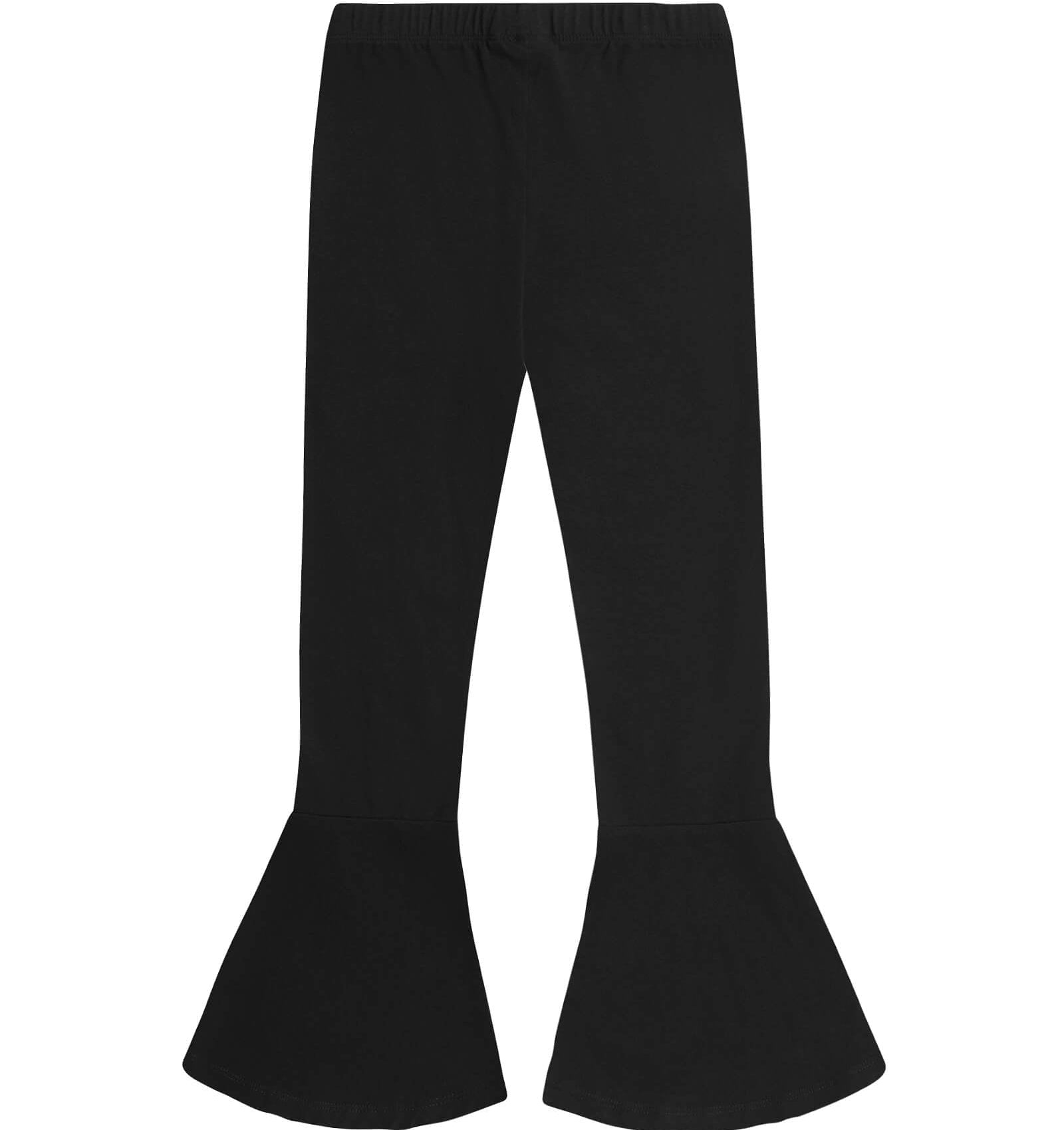 Item: Make space for style. These black flared leggings are made for stargazers, moon chasers, and kids with big imaginations. Featuring a playful moon and star embroidery on the front, they combine cosmic charm with retro vibes and serious flair—literally.