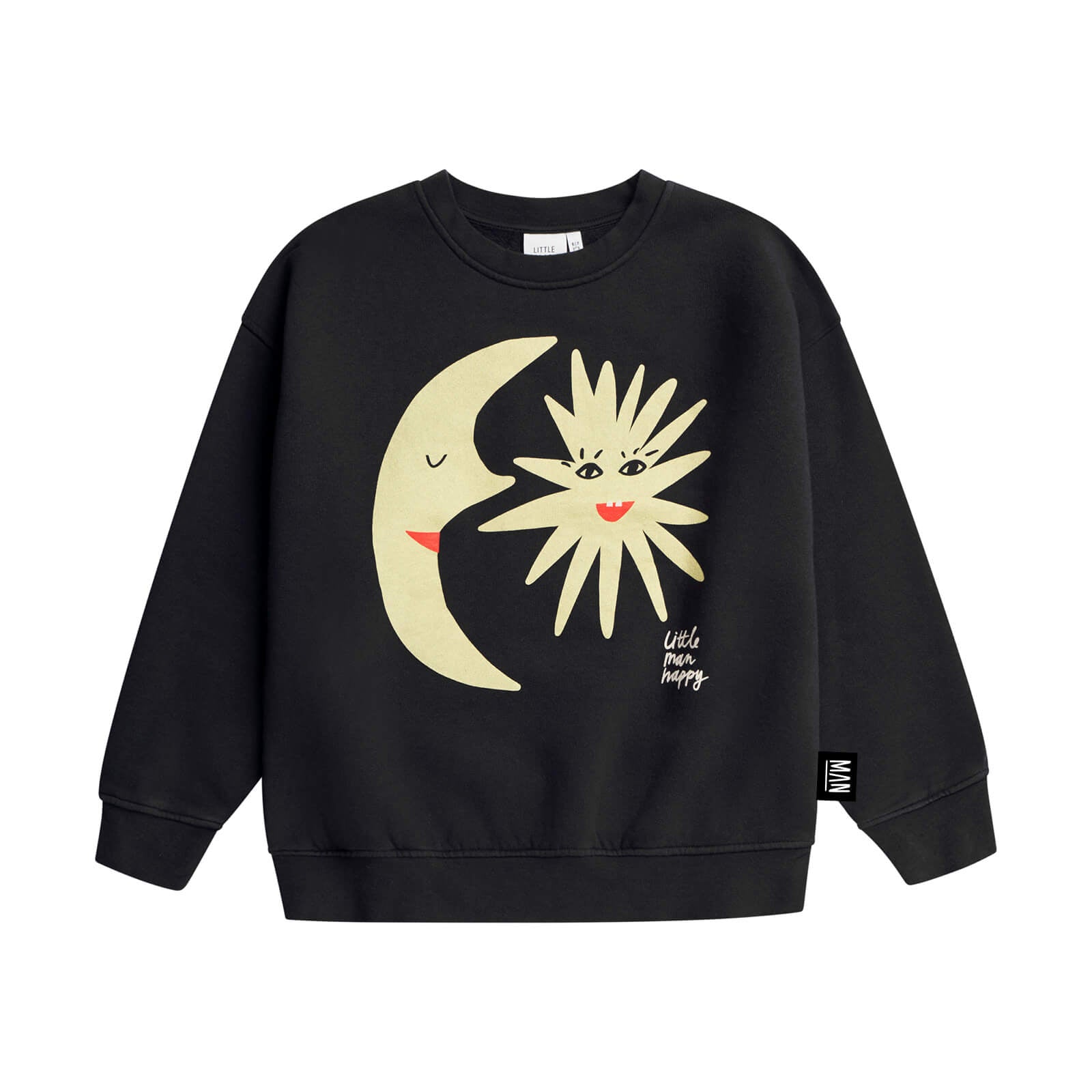 Item: This black kids sweatshirt is made for little lunar lovers and stargazers with serious style. Featuring a dreamy moon and cheeky star graphic in soft yellow tones, it blends cosmic charm with a cool, street-ready edge. The bold front print adds instant attitude – whether styled with wide-leg denim, joggers, or layered like a pro.